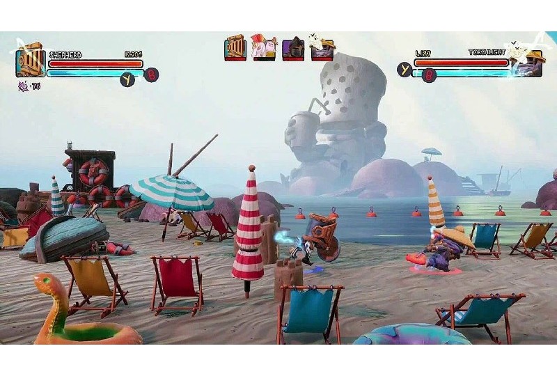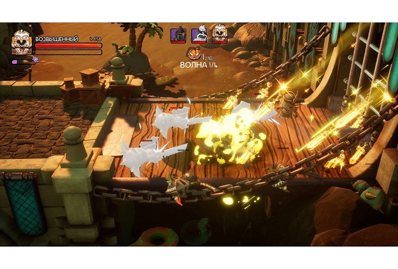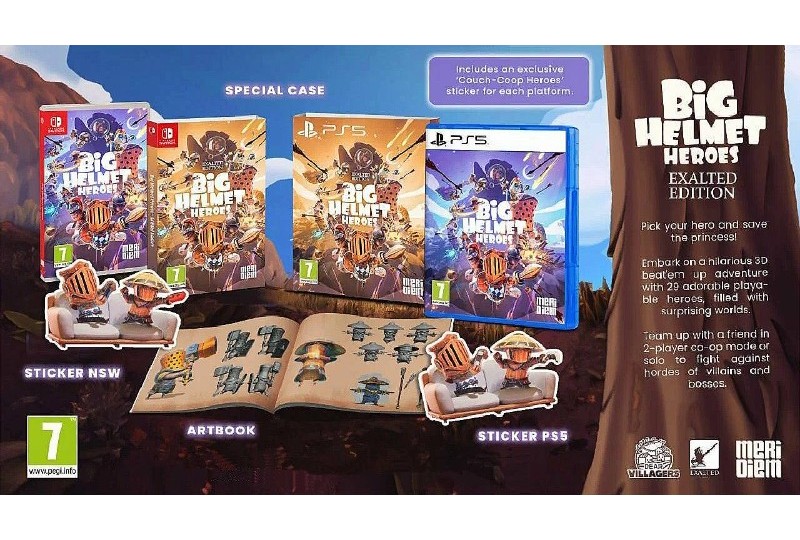 Big Helmet Heroes Exalted Edition [PS5] Разработчик: Exalted Studio. Издатель: Dear Villagers. Количество игроков: 1-2.Весёлая и увлекательная игра-платформер в жанре beat'em up (поколоти их всех). Выбирайте себе смешного рыцаря в латах и здоровенном шлеме, и отправляйтесь во имя добра бить морды ордам злодеев на ярких уровнях с множеством забавных загадок, секретов, и различных смешных отсылок к жанру фэнтези. По сюжету надо спасти принцессу, но не ждите от игры, у которой упор на то, что надо развеселить и рассмешить игроков, глубокого повествования. Так что выбирайте рыцаря из весьма обширного списка доступных персонажей, и вперёд к приключениям. И, да, во время прохождения есть возможность отыскать и спасти скучающих во вражеском плену доблестных и забавных рыцарей, которые в благодарность добавятся в вашу команду.