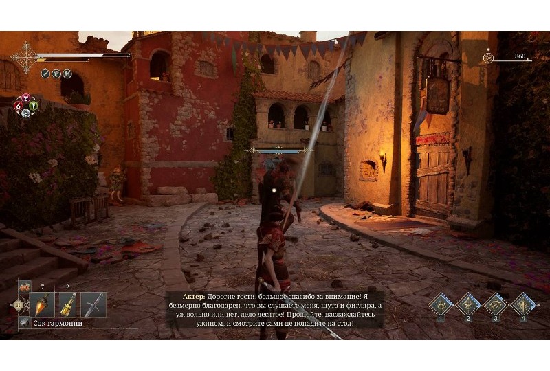 Enotria The Last Song [PS5] Разработчик: Jyamma Games. Издатель: Jyamma Games. Количество игроков: 1.Видеоигра в жанре ролевой экшен от третьего лица. Сеттинг основан на итальянском фольклоре и театральных традициях. События разворачиваются в ярком солнечном мире вымышленой страны Энотрия, с пейзажами, архитектурой и настроением Южной Италии. Вот только там теперь всё во власти Кановаччо - созданной с какой-то странной целью богами вечной пьесы, которая держит мир в неестественном стазисе. Все там носят маски и играют предназначенные им роли. Актёры, шуты и музыканты постоянно танцуют, поют и что-то декламируют. Но если прислушаться, выясняется, что слова зачастую весьма злобные, с угрозами сожрать тех, кто не смеётся. А если подойти поближе, то на вас набросятся с намерениями прикончить. Но главный герой решил оказать сопротивление могущественным авторам пьесы, победить их и вывести мир из застоя.