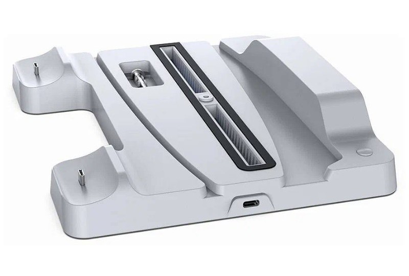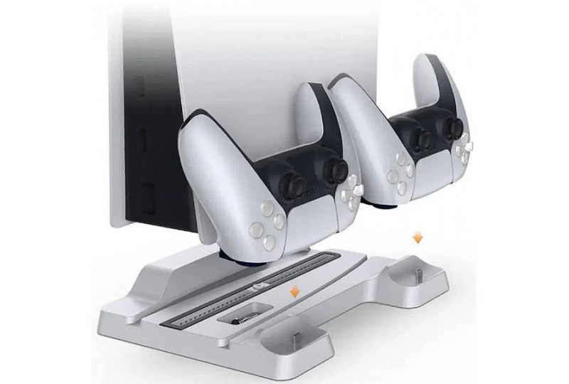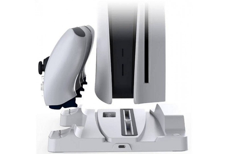 Два практичных слота для зарядки геймпадов DualSense позволяют всегда держать аксессуары под рукой и полностью заряженными.