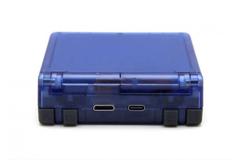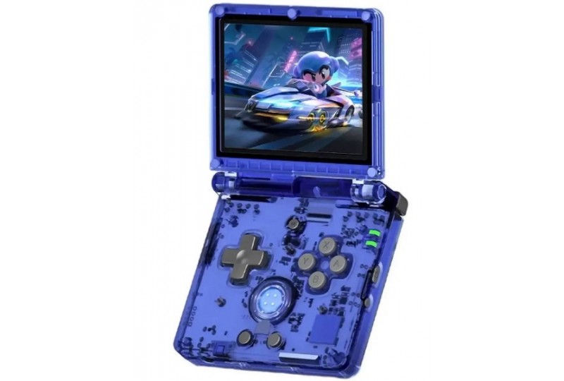 Компактный корпус в прозрачном синем цвете и складной форм-фактор напоминают GBA SP, но внутри — современная начинка: 4‑ядерный ARM Cortex‑A53 H700 1,5 ГГц и графика G31 MP2. Экран IPS с полным углом обзора и нулевым OCA расстоянием обеспечивает чёткую картинку без воздушной прослойки.