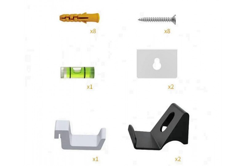 - Крепёжный набор: шурупы, анкеры, винты, уровень и двухсторонняя лента