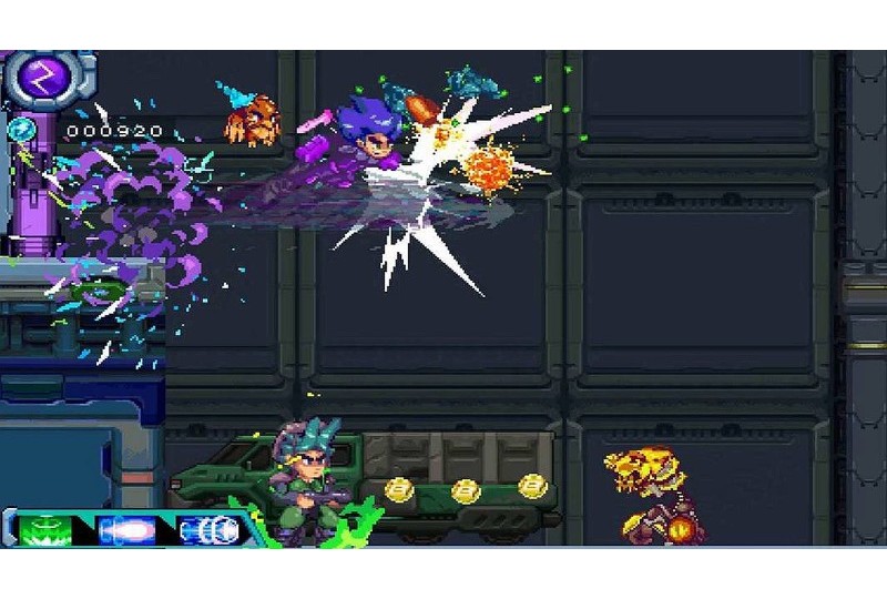 Berserk Boy — это захватывающая и стремительная 2D метроидвания для PS5, созданная в духе классических 16-битных хитов, таких как Mega Man и Metroid. Игра рассказывает историю мальчика по имени Кей, который в недалёком будущем одевается в костюм берсерка, чтобы остановить безумного ученого Геноса, поработившего мир с помощью мощных энергетических сфер.
