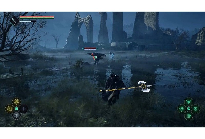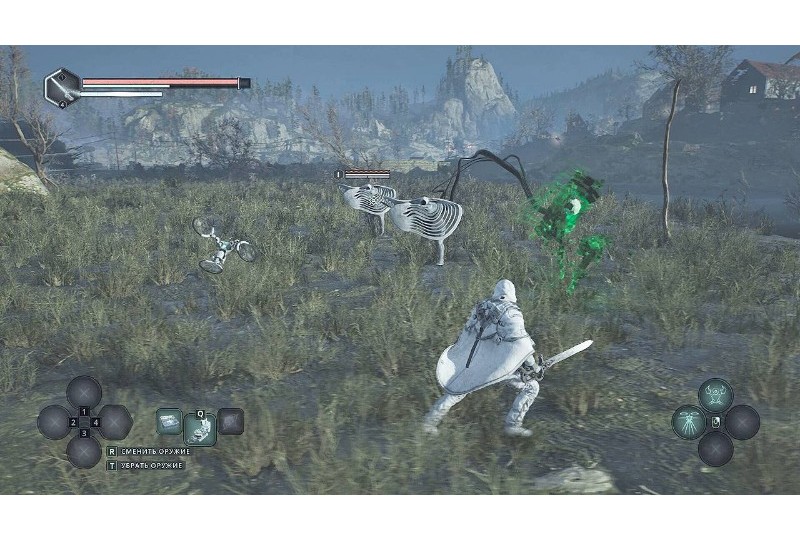 Пули против схожих внешне с тварями из Death Stranding химер бесполезны — сражайтесь с помощью меча, топоров, секиры и копья, созданных по древним технологиям. Бои требуют внимания и тактики: уклоняйтесь, комбинируйте удары и вовремя блокируйте атаки. Используйте дрон для сканирования врагов, чтобы найти уязвимые места и отвлечь противников.