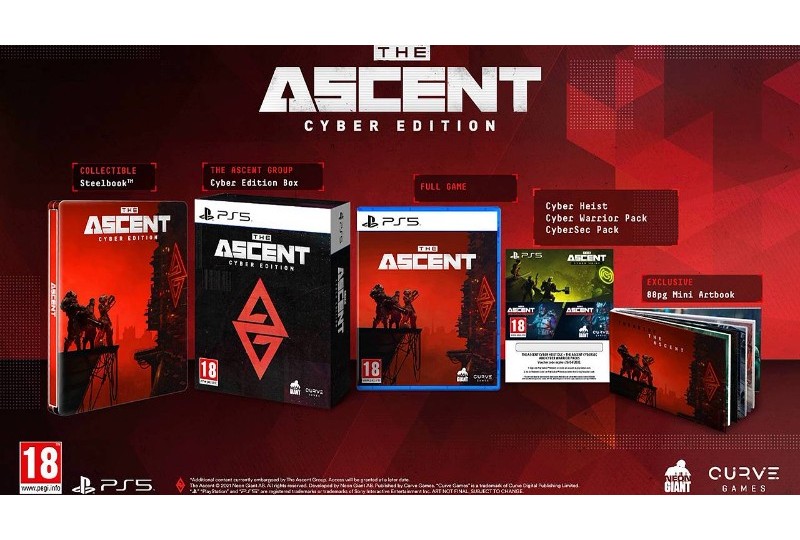Издание The Ascent - Cyber Edition для PS5 отличается не только самой игрой, но и стилем оформления — в комплект входит металлический кейс SteelBook, эксклюзивный мини-артбук, наборы CyberSec и Cyber Warrior, а также дополнение Cyber Heist.