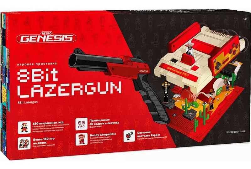Стационарная игровая приставка Retro Genesis 8 Bit Lazergun выполнена в классическом дизайне, напоминающем легендарную Nintendo/FamiCom (Dendy). Эта консоль сочетает в себе ностальгию и современные технологии, обеспечивая стабильные 60 FPS без задержек, благодаря аналогам оригинальной электронной компонентной базы.