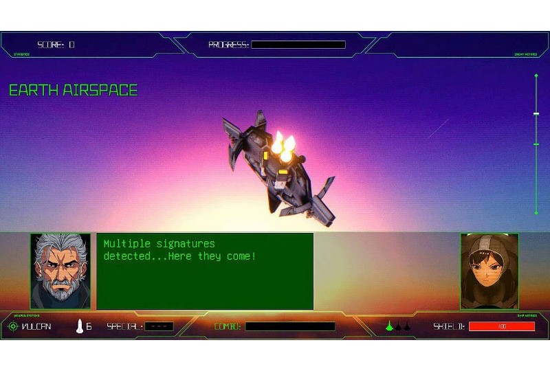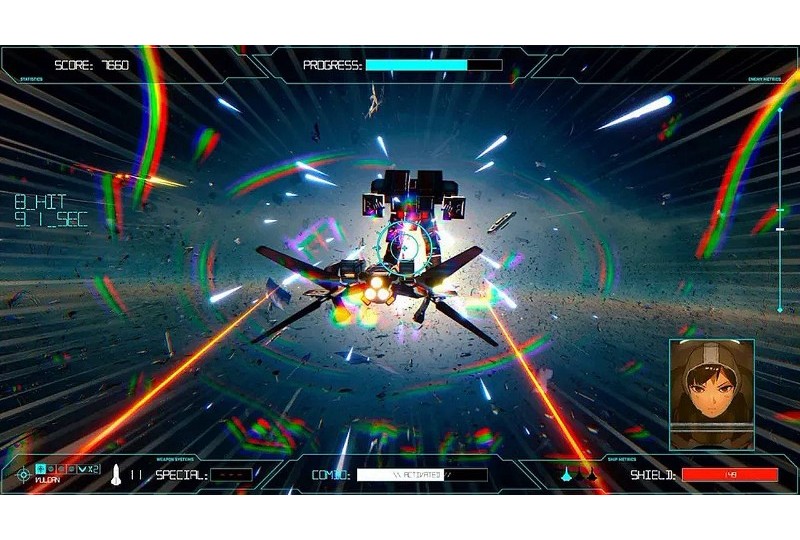 Rogue Flight [PS5] Разработчик: Truant Pixel. Издатель: PERPETUAL. Количество игроков: 1.Видеоигра представляет собой аркадную леталку shot'em up (перестреляй всех) c элементами аниме и научной фантастики. По сюжету в будущем человечество создало объединённое правительство, разобралось с множеством проблем и усиленно начало осваивать космос, заодно предусмотрительно реализовывая систему защиты от возможного инопланетного агрессора. Воплощением проекта стало создание суперкомпьютера A.R.G.U.S. и после вроде успешного испытания поручение ему контроля над силами обороны Земли. По ходу забыт был фильм талантливого режиссёра Джеймса Камеруна "Терминатор". Да, вы поняли правильно: суперкомпьютер решил, что люди для светлого будущего планеты не нужны, и устроил тотальную зачистку. Несколько лет уцелевшее человечество выживало в подземных убежищах и искало варианты по возвращению контроля над Солнечной системой.